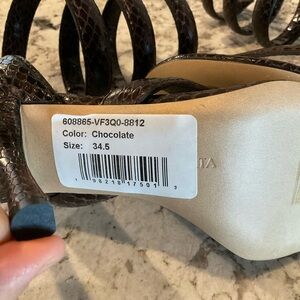 Step out in style with these elegant Chocolate snake print strappy heels. Perfect for any occasion, these shoes offer both comfort and sophistication.