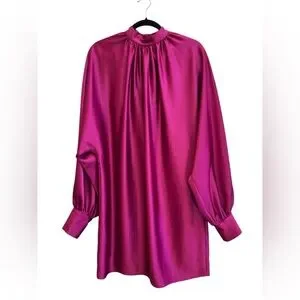 Trina Turk Magenta Satin Mock Neck Cocktail Dress Long Sleeve M