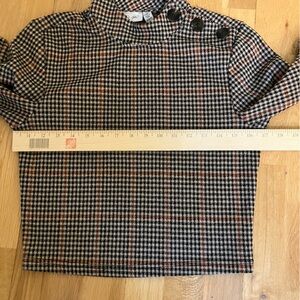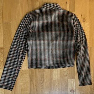 R.D. Style Women’s Black and Brown Plaid Houndstooth Cropped High Neck Shirt