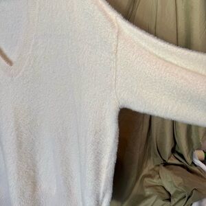 By Anthropologie Oversized Deep V-Neck Eyelash Tunic Ivory Sweater