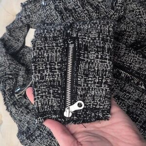 Sophisticated tweed blazer with a modern edge. Features a stylish zip closure. Perfect for versatile styling.