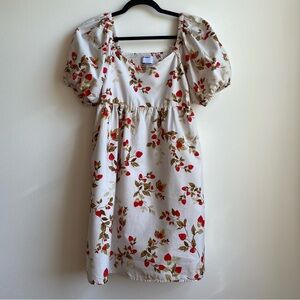 Old Navy Strawberry Puff Sleeve V-Neck Lined Mini Dress Elastic Back Women’s XS