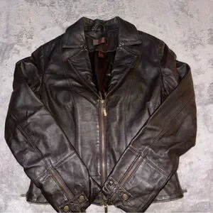 Sophisticated leather jacket by Danier. Features a classic design with zippered cuffs. Perfect for any occasion.