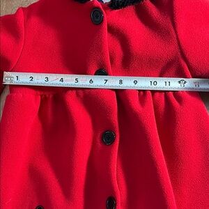 Charming vintage red kids coat featuring playful black dog accents. Perfect for keeping your little one stylish and warm.
