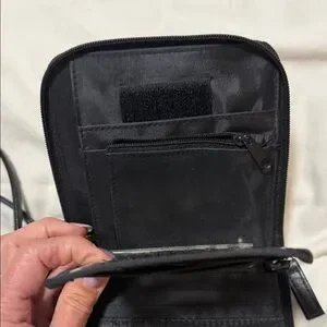 Vintage 1980s made by BRODY QUALITY GOODS. Stylish and functional black crossbody bag with eye-catching studded details. Perfect for adding a modern edge to your outfit. Lots of storage for bills, cards, lipsticks. In great condition.