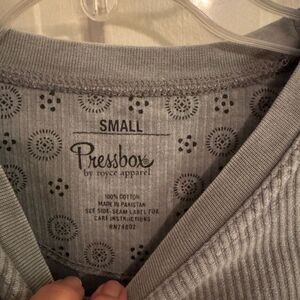 The Pressbox By Royce Apparel Clemson Tiger Sweatshirt is a comfortable and stylish piece of fan apparel for the regular season. The sweatshirt is made in Pakistan and features a heather gray color with the Clemson Tigers team logo. It is a women's size small and is perfect for football fans who want to show their support during the regular season.