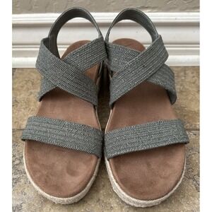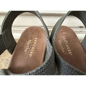 The Women's Skechers Martha Stewart Arch Fit Beverlee in size 8 is a stylish and comfortable slip-on sneaker perfect for casual occasions. Featuring a solid green color and mesh fabric type, this athletic shoe is designed with a manmade outsole and platform wedge for added style and comfort. The slip-on closure and slingback feature make it easy to wear, while the Skechers brand ensures quality and durability. Perfect for summer, fall, and spring seasons, these sneakers are a trendy addition to any woman's shoe collection.