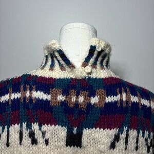 Vintage Woolrich Turtleneck Sweater Size Medium Beautiful Vintage Condition⭐️ No Vintage Smells!! Two cute little buttons Colours Cream, Red, Blue Patterned 100% Wool