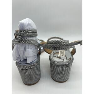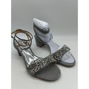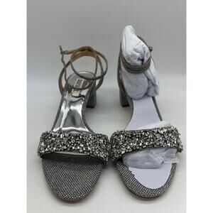 Badgley Mischka Women's Jada Ankle Wrap Block Heel Silver MP5316 Size 9 NIB