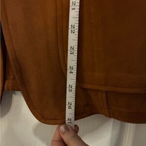 Elevate your style with this elegant brown suede faux jacket. Perfect for any occasion, this jacket offers both comfort and sophistication.