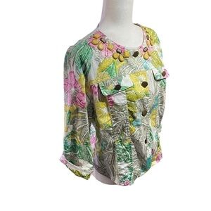 Linear Womens Floral Cropped Jacket - Size Large- Beading-Faux Front Pockets