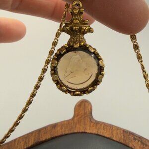 Vintage Goldette NY Greek Meander 5 Strand Layered Chains Cameo Pendant 1960’s