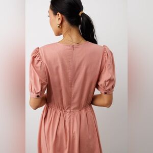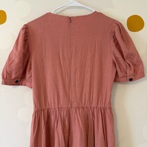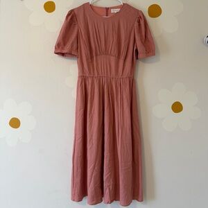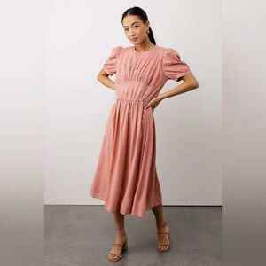 Bohme Linen Blend Cyrus Midi Dress in Pink with Puff Short Sleeves