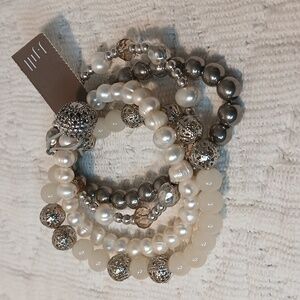 J.Jill Elegant Silver and White Beaded Bracelet Set