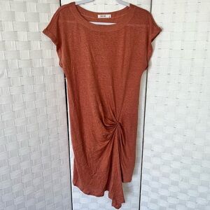 MOD REF 100% Linen Gathered Ruched Asymmetrical Dress Women’s Size Small Salmon
