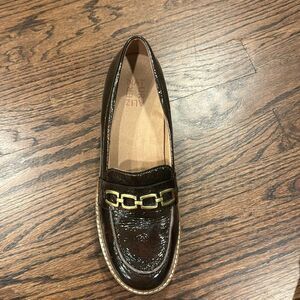 Naturalizer lug sole loafer size 9. With chainlink ornamentation. Brown patent upper.