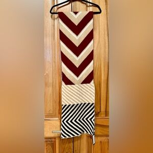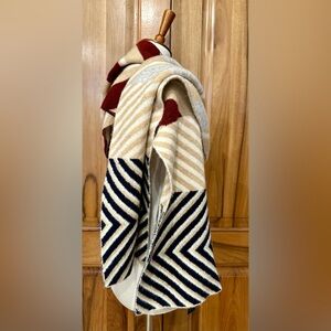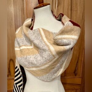 NWT Marcus Adler Super Soft & Fuzzy Scarf/Wrap Unisex Layer Burgundy/Beige/Black. Oversized/Long. Unique color blocking/geometric patterns. Beige, cream, gray and black on half length-wise, and beige, cream, burgundy, and black on the other half.