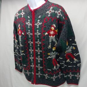 Eagle's Eye Skiers & Snoflake Zip-Up Knit Cardigan Unisex Vintage 90s XL Grey...