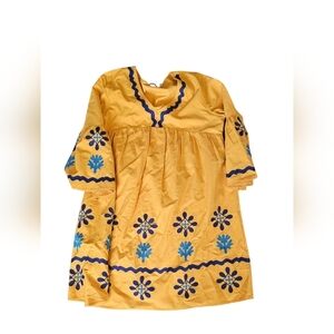 Soft Surroundings Petra Dress Embroidered Yellow Dress with Blue Accents