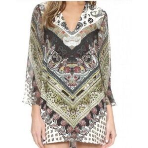 Embrace a bohemian vibe with this stylish women's top. Featuring a mix of black, green, and white colors, this top is perfect for any casual outing. The intricate patterns add a unique touch to your wardrobe.
