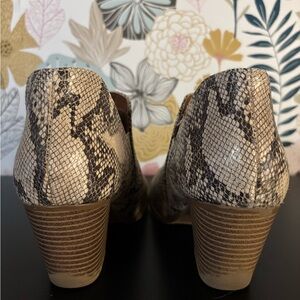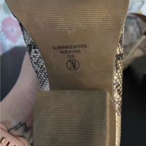 Step out in style with these chic snakeskin pattern heeled boots. The perfect blend of fashion and comfort, these boots are a must-have for your wardrobe. Heels has some wear on them.