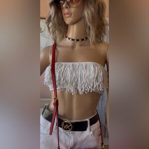 Elevate your style with this chic white fringe bikini top. Perfect for summer outings and casual gatherings. Excellent condition.