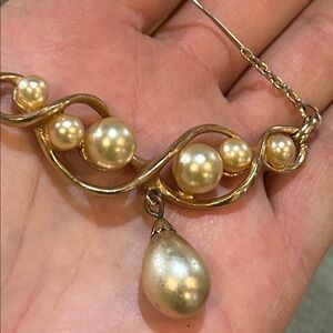 Vintage gold-tone necklace with faux pearls and drop pearl pendant.