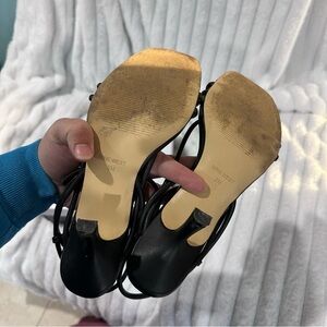 Sleek black heels with strappy design. Ideal for stylish outings.