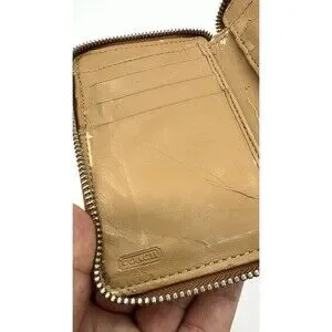 The Coach Mini Wallet is a stylish accessory designed for women, made of high-quality leather with a multicolor design. This XS-sized wallet is perfect for carrying essentials with its compact size and practical design. With its renowned Coach brand and origin from Vietnam, this wallet is sure to add a touch of luxury and fashion to any outfit. it a little peeled of inside other ways is in excellent condition