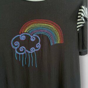 Embroidered Rainbow Shirt With Ruffle Sleeves Size Small