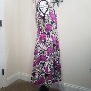 Nine West Purple & Black Fit n Flare Floral Print Dress Sz 10