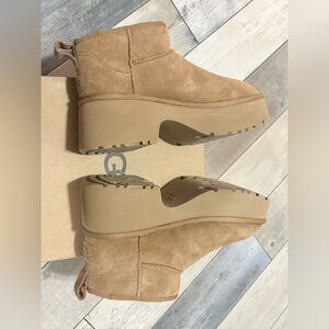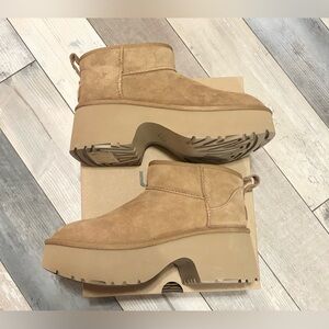 NWT UGG Classic Ultra Mini New Heights Boots Chestnut Platform Heel 9 BRAND NEW