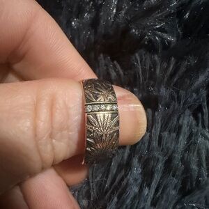 Real diamonds I am not exact on the weight or size of the diamonds. 14k Rose gold it is engraved with marijuana leaves as the design. Design goes all the way around the band. Ring is size 9
