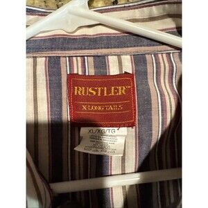 This product is a vintage Men's Wrangler Wrancher Western plaid shirt from the 1990s, featuring pearl snaps and a colorful multi-color design. Made from a comfortable cotton blend material, this XL shirt has a Western look and is perfect for casual occasions. Made in the United States by the trusted brand Wrangler, this shirt is a stylish and versatile addition to any wardrobe, with a classic pearl snap and graphic features that add a touch of nostalgia to any outfit.