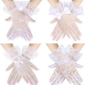 4 Pairs Tea Party Gloves for Little Girls Kids Lace Short White Satin Princess D