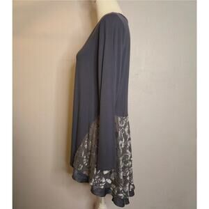 Layered Flowy Long Sleeve Velvet Burnout Tunic Gray M Fairy Grunge Whimsygoth
