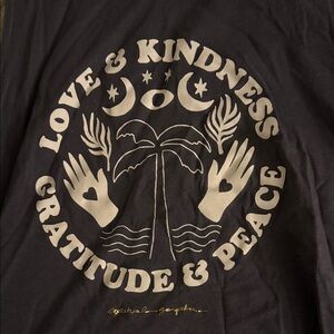Dark blue tank top with uplifting message. Features bold white graphics. Perfect for spreading positivity.