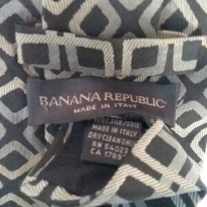 Banana Republic Silk Tie Flat Black Neutral Chain Link Design 3D Effect