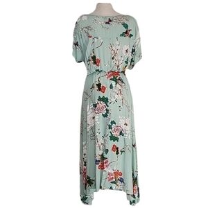 Amzplus Dress Floral Bohemian Smocked and Tassled Tie Front Green Tea V-Neck Dual Length Plus Size 3XL