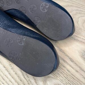 Tory Burch Minnie Pebbled Leather Ballet Flats Navy Blue Travel Women’s Size 9.5