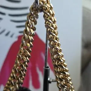 Elegant women's bag featuring a striking black design with gold chain trim. Perfect for adding a touch of sophistication to any outfit.