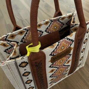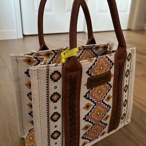 NWT Wrangler x Montana West chic tote with geometric patterns. Features tan and cream colors.
