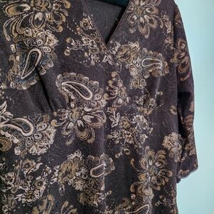 Vintage Y2K East 5th Metallic Paisley Top — Chocolate Brown — 3/4 Sleeve — Size Medium