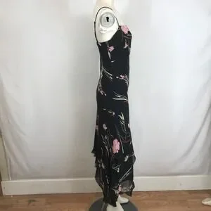 Lily Black Floral Print Spaghetti Strap Midi Dress Women's Medium Slip 72k