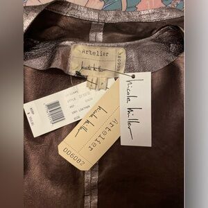 NWT Artelier Nicole Miller 100% lamb leather drapey jacket. Size P (XS.)