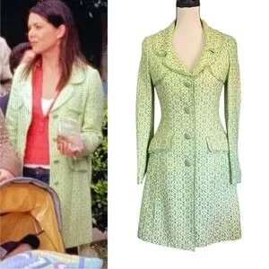 Vintage Y2K Lime Green Tweed Trench Duster Coat ASO Lorelai Gilmore in Gilmore Girls