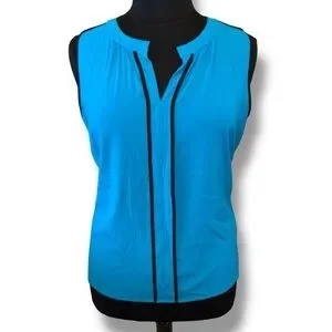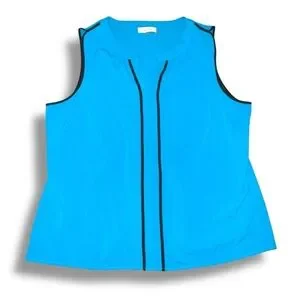 CALVIN KLEIN Split V-Neck Trim Sleeveless Top Tank - Teal Plus 1X