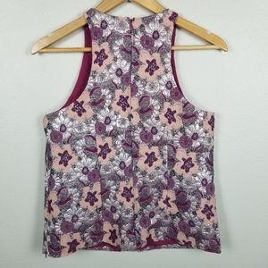 J. Crew Collection Metallic Purple Pink Silver Floral Racerback Vest Top Size 4