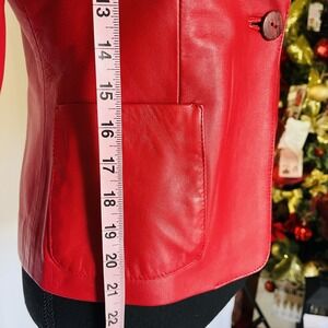 Italian size 42 Jacket! This EUC Italian Fine Red Leather Peruzzi Firenze Women Jacket is a stylish and versatile piece perfect for various occasions. Made with high-quality leather and featuring a classic 1 button closure, this jacket is designed for a regular fit. The rich red color and solid pattern add a touch of elegance, while the lightweight construction makes it suitable for all seasons. Ideal for travel, parties, casual outings, or formal events, this jacket from Peruzzi is sure to become a staple in any woman's wardrobe. The sophisticated Italian theme adds a touch of flair to this timeless basic jacket.