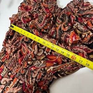 Cynthia Steffe boho fairy Western whimsy Red and Black Paisley ruffle Jumpsuit